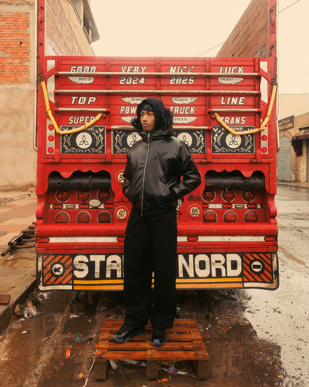Le mannequin homme mesure 1m85 et porte une taille XL en bas et M en haut