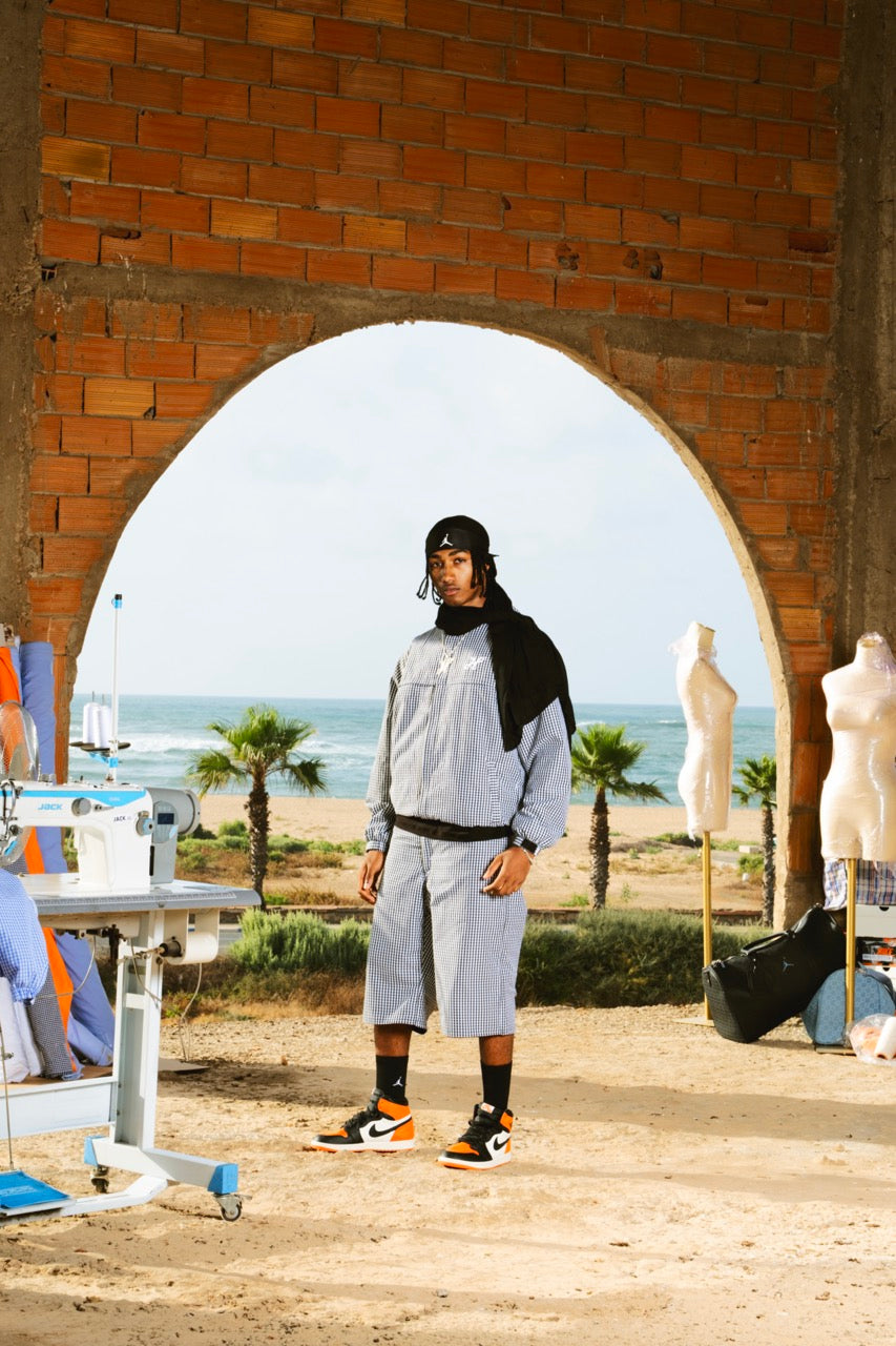 Le mannequin homme mesure 1m85 et porte une taille L.