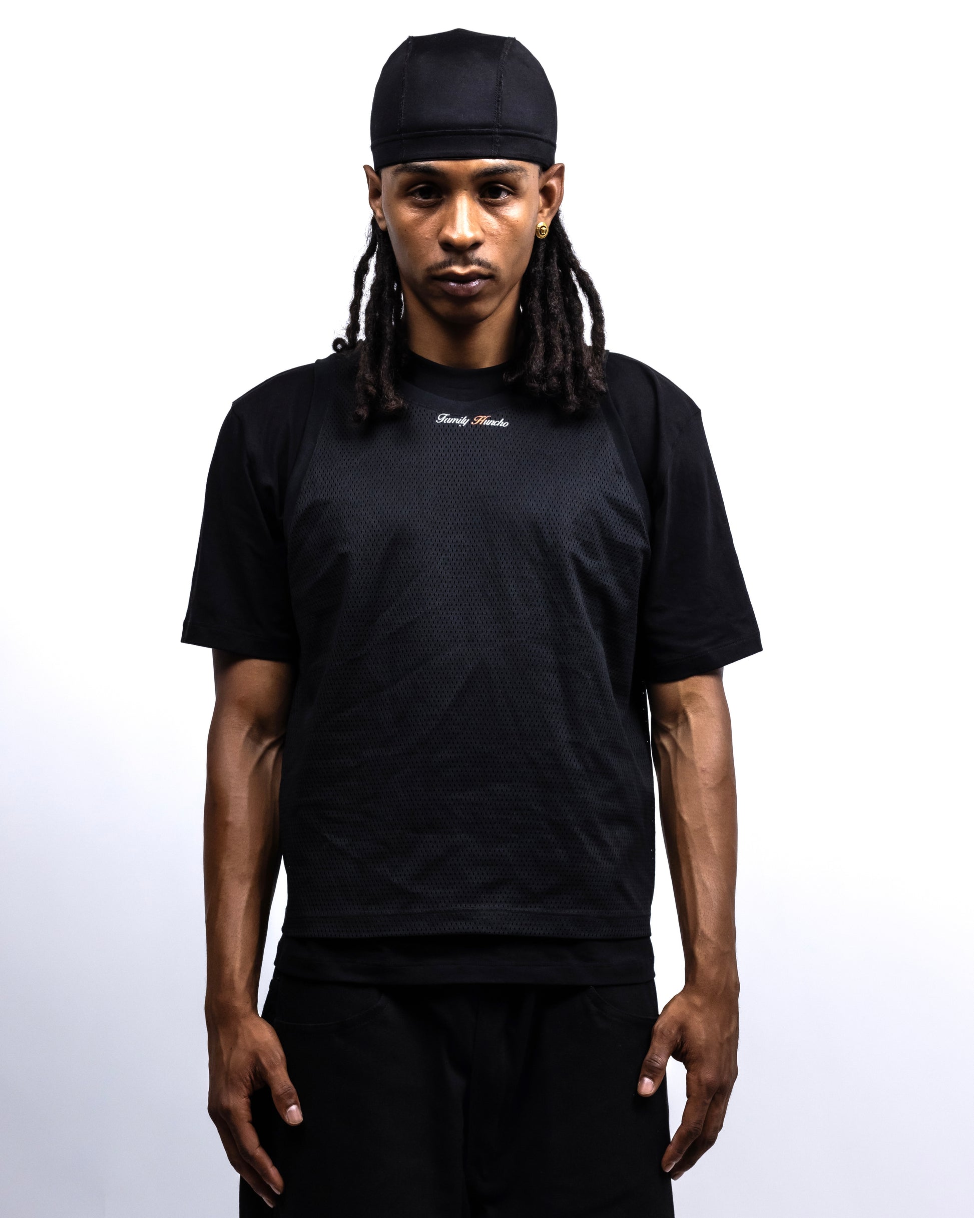 Le mannequin homme mesure 1m85 et porte une taille L.